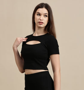 Women's Crop Top – Cut-Out Half Sleeve Crop Top